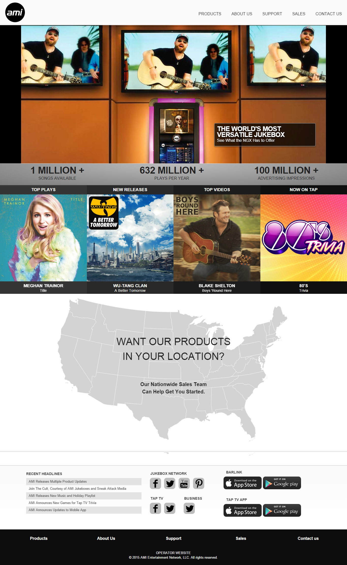 AMI Entertainment’s corporate site needed to be the public face of a diversified brand, speaking equally to consumers, business partners, and third-party clients about the company’s line of jukeboxes and digital entertainment solutions.